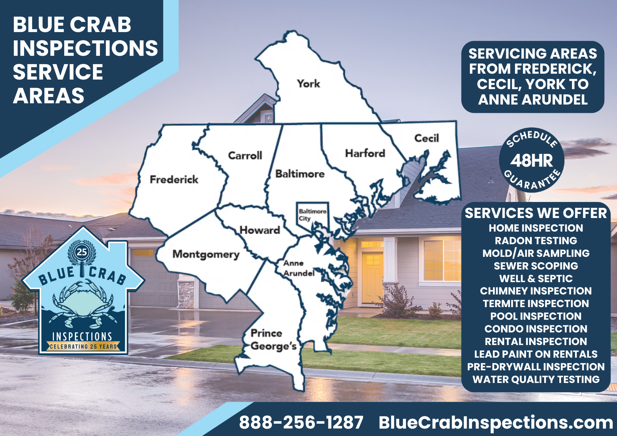 Locally owned and operated since 2001, Blue Crab Inspections is one of the oldest, largest, and highest rated inspection companies in the Greater Baltimore area and some of the Chesapeake Bay region. We have over 75 years of combined experience in the residential inspection industry. Our clients include home buyers, home sellers, current homeowners, investors, banks, insurance companies, property management companies and mortgage lenders.